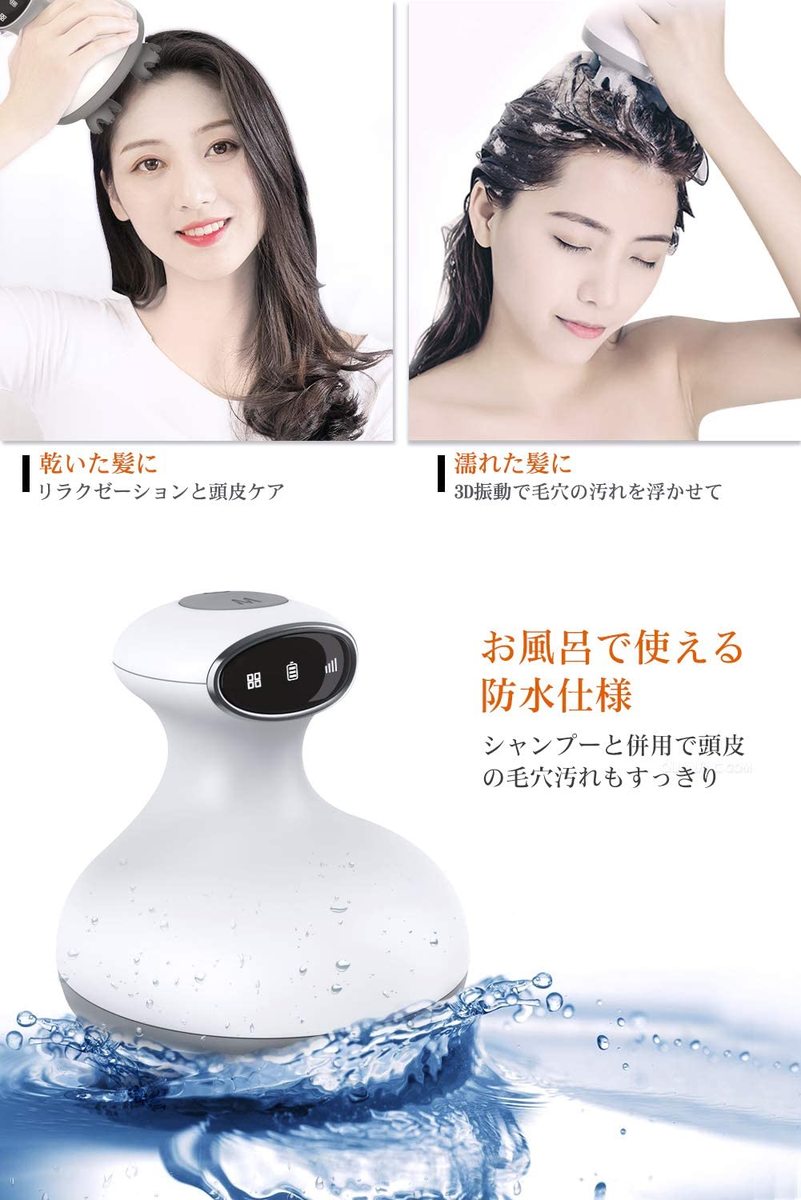 電動頭皮ブラシ ヘッドマッサージャー 3D指圧揉捏 IPX7防水 乾湿両用 最新振動モード付き USB充電 操作簡単 スカルプ ケア 発毛促進