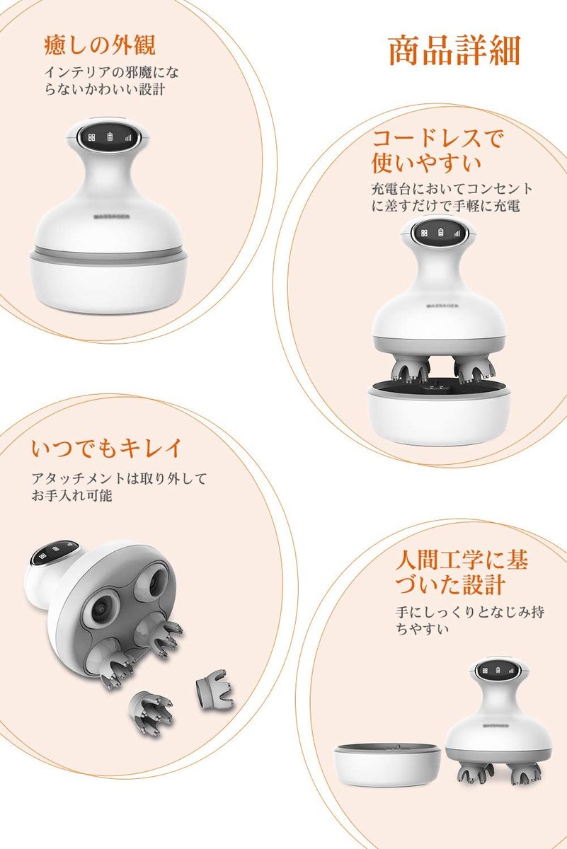 頭皮・ヘッドマッサージャー(新揉捏法) 電動 ヘッドマッサージ器 頭皮マッサージ器 音波振動 指圧風 頭皮ブラシ 抜け毛 ヘッドスパ 発毛促進 3Dフェイス・額・ヘッド・首・肩 全身 マッサージ器 USB充電式